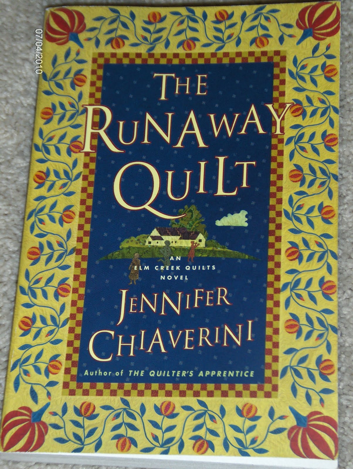 Since coming home from my retreat I have hardly picked up needle and thread. I have spent more time in hospitals than I care to think of; and instead of being able to do my applique which kind of requires me to spread out my things because my project (Cherry Trees BOM) wasn't totally prepped, I only stitched down two flower buds and found it to be more frustrating than fun, so I put it away and took to finishing up reading The Runaway Quilt by Jennifer Chiaverini.